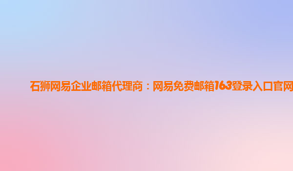 网易企业邮箱代理商:网易免费163邮箱登录 作为龙海地区的网易企业邮箱代理商,我们为您提供网易免费163邮箱登录服务。使用网易企业邮箱带来的种种优势,让您在工作中更加高效便捷。 优势一:强大的稳定性 网易企...