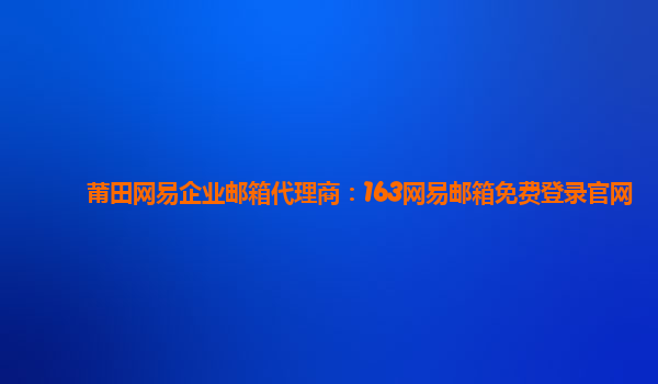 莆田网易企业邮箱代理商:163网易邮箱免费登录官网 作为莆田地区的网易企业邮箱代理商,我们提供免费登录官网的服务,让您可以轻松开通和管理您的企业邮箱。网易企业邮箱作为国内领先的企业邮箱服务商,具有许多优...