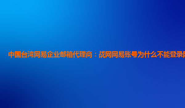 2024-02-17中国台湾网易企业邮箱代理商:战网网易账号为什么不能登录网易邮箱 网易企业邮箱作为一款专为企业定制的邮箱产品,提供了专业、稳定、安全的邮箱服务,许多企业和机构选择网易企业邮箱作为他们的邮件工具。然而,有...