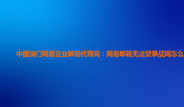 中国澳门网易企业邮箱代理商:网易邮箱无法登录战网怎么回事 网易企业邮箱优势 1.专业化定制:网易企业邮箱提供专业化的企业邮箱定制服务,可以根据企业需求定制邮箱域名、邮箱容量、安全设置等。 ...