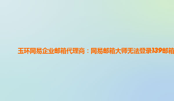 2024-02-17网易企业邮箱代理商:网易邮箱大师无法登录139邮箱 在现代企业中,电子邮件已成为沟通和协作的重要工具之一。为了满足企业对高效、安全的电子邮件服务的需求,网易企业邮箱应运而生。而作为网易企业邮箱的代理商...
