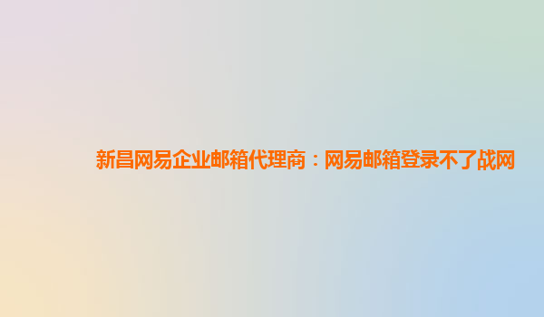 2024-02-17新昌网易企业邮箱代理商:网易邮箱登录不了战网 作为新昌网易企业邮箱代理商,我们经常接到客户反馈称无法登录战网的问题。经过调查发现,很多用户在使用个人邮箱登录时遇到了各种问题,而使用企业邮箱却可以解决这...