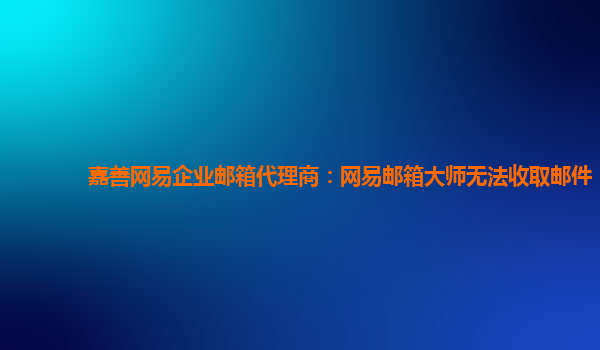2024-02-17嘉善网易企业邮箱代理商:网易邮箱大师无法收取邮件 问题描述: 最近,嘉善网易企业邮箱代理商遇到了一个问题,即无法通过网易邮箱大师收取邮件的情况。下面我们将根据标题中所包含的内容和网易企业邮箱的...