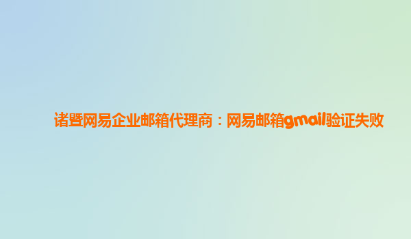 2024-02-17诸暨网易企业邮箱代理商:网易邮箱gmail验证失败 网易企业邮箱是一款专为企业定制的企业级电子邮件产品,具备稳定可靠、功能强大、安全高效等优势。而作为诸暨网易企业邮箱的代理商,我们致力于为企业提供更好的邮...
