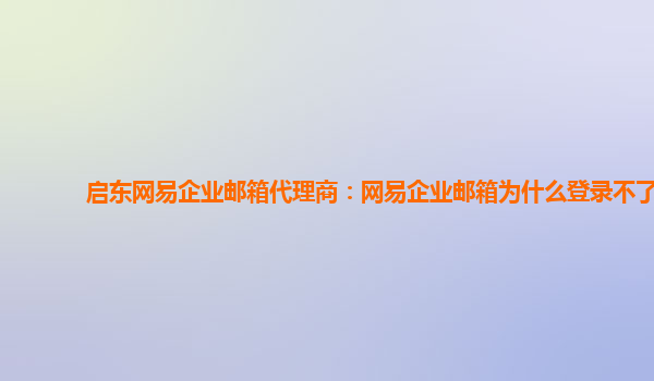 2024-02-15启东网易企业邮箱代理商:网易企业邮箱为什么登录不了 一、登录问题的可能原因 在使用网易企业邮箱时,有时候会遇到登录不了的情况。这可能是由以下几个原因导致的: 输入的账号或密码错误。 ...