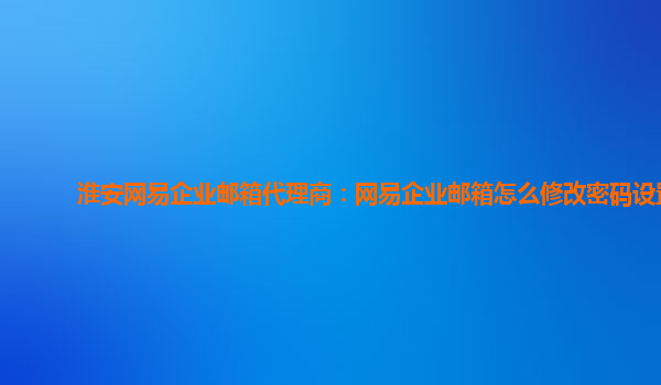 网易企业邮箱代理商:网易邮箱密码怎么修改 网易企业邮箱作为一款广受欢迎的企业级邮箱服务,其安全性和便捷性备受赞誉。作为连云港地区的网易企业邮箱代理商,我们非常了解网易企业邮箱的优势以及使用后给...