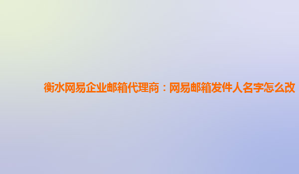 2024-02-14以衡水网易企业邮箱代理商:网易邮箱发件人名字怎么改为小标题网易企业邮箱是一款功能强大的企业邮箱服务,它提供了丰富的功能和灵活的设置选项,使得用户能够轻松地管理和定制自己的邮箱。在使用网易企业邮箱时,...