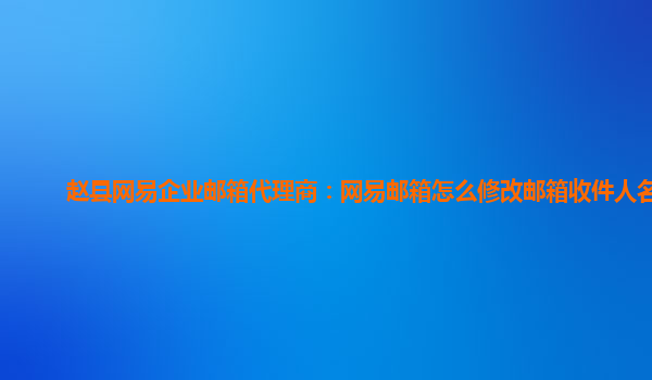 2024-02-14赵县网易企业邮箱代理商:网易邮箱如何修改收件人名字 在使用网易企业邮箱时,如果你需要修改收件人的名字,可以按照以下步骤操作: 步骤一:登录网易企业邮箱 首先,在浏览器中输入企业邮箱的登录地址,然后输入...