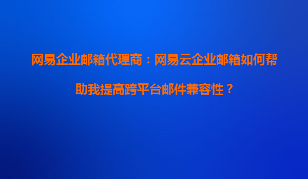 2025-09-16网易企业邮箱代理商:网易云企业邮箱如何帮助我提高跨平台邮件兼容性? 一、跨平台邮件兼容性的重要性 在现代办公环境中,企业员工可能使用不同的操作系统(如Windows、macOS、iOS、Android等)或邮件...