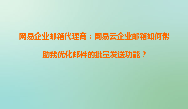 2025-09-16网易企业邮箱代理商:网易云企业邮箱如何优化邮件的批量发送功能? 一、邮件批量发送的痛点与需求 对于企业而言,无论是市场营销、客户维护,还是内部通知,高效的邮件批量发送功能都至关重要...