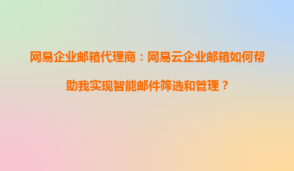 网易企业邮箱代理商:网易云企业邮箱如何帮助我实现智能邮件筛选和管理? 一、网易企业邮箱的核心优势 网易企业邮箱作为国内领先的企业通信服务提供商,凭借多年的技术积累和行业经验,为企业用户提供...