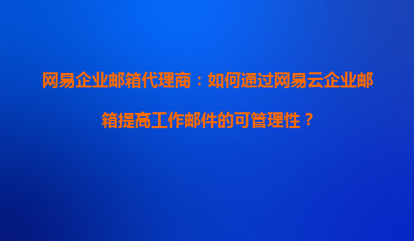 2025-09-16网易企业邮箱代理商:如何通过网易云企业邮箱提高工作邮件的可管理性? 在现代企业中,高效的邮件管理是提升工作效率的关键。作为网易企业邮箱代理商,我们深知网易云企业邮箱在邮件管理方面的优势。以下将从多个角...