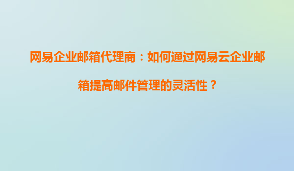 2025-09-16网易企业邮箱代理商:网易云企业邮箱如何帮助您简化邮件操作流程 引言 在快节奏的商业环境中,高效的沟通是企业成功的关键。电子邮件作为企业日常沟通的重要工...