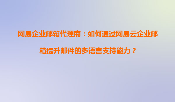 2025-09-16网易企业邮箱代理商:如何通过网易云企业邮箱提升邮件的多语言支持能力? 一、网易企业邮箱的多语言支持优势 随着企业全球化的发展,跨语言沟通成为日常业务的重要组成部分。作为国内领先的企业邮...