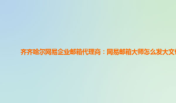 2024-02-14齐齐哈尔网易企业邮箱代理商:网易邮箱大师怎么发大文件 作为一家齐齐哈尔网易企业邮箱代理商,我们深知网易企业邮箱的优势,并且亲身体验了使用企业邮箱后带来的种种好处。在这篇文章中,我们将重点介绍如何使用网...