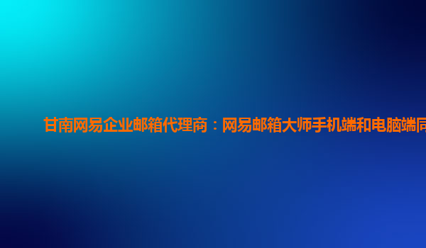2024-02-13甘南网易企业邮箱代理商:网易邮箱大师手机端和电脑端同步 作为甘南地区的网易企业邮箱代理商,我们在提供网易企业邮箱服务中,推荐客户使用网易邮箱大师,并且强调了它手机端和电脑端的同步功能。以下将结合网...