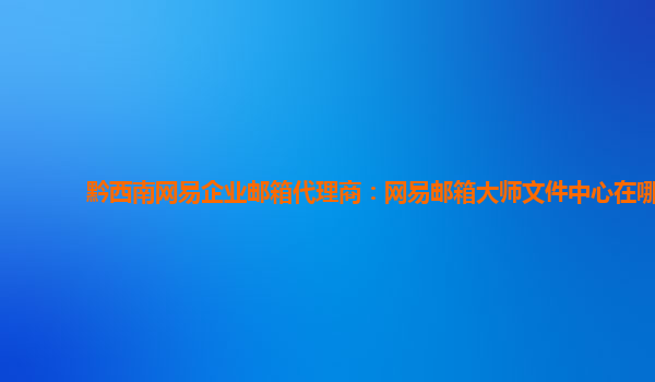 2024-02-13黔西南网易企业邮箱代理商:网易邮箱大师文件中心在哪 作为黔西南网易企业邮箱的代理商,我们深入了解了网易企业邮箱的各项功能和优势。其中,网易邮箱大师的文件中心是一个非常强大且便捷的功能,让我们来详细...