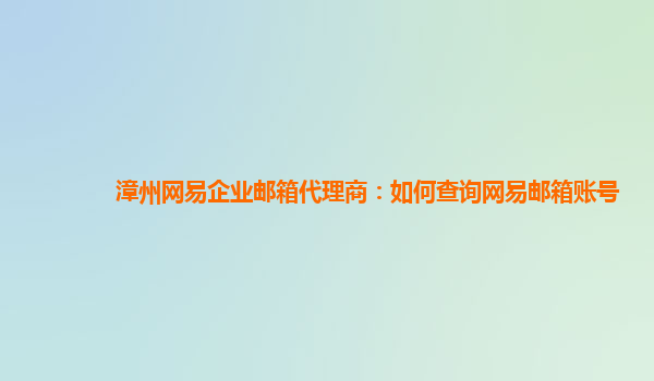 2024-02-12漳州网易企业邮箱代理商:如何查询网易邮箱账号 随着互联网的快速发展,电子邮件已成为企业与个人之间沟通的重要工具。网易企业邮箱作为国内一流的企业邮箱服务商,为企业提供稳定可靠的邮箱服务。作为漳州地区的网...