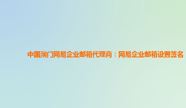 2024-02-12中国澳门网易企业邮箱代理商:网易企业邮箱设置签名一、网易企业邮箱的优势1.稳定可靠:网易作为中国知名互联网公司,拥有强大的技术实力和稳定的服务器,保证企业邮箱的稳定性和可靠性。2.安全防护:网易企业邮箱...