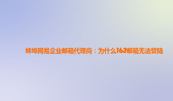2024-02-12标题:蚌埠网易企业邮箱代理商:为什么163邮箱无法登陆 小标题1:网易企业邮箱优势 网易企业邮箱是一款专业的企业电子邮件解决方案,具有以下优势: 稳定可靠:网易是国内知名互联网公司,提供的企业邮箱具有高度...