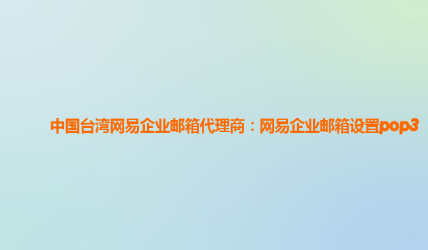 2024-02-12中国台湾网易企业邮箱代理商:网易企业邮箱设置pop3 网易企业邮箱是一款专为企业定制的电子邮件解决方案,为企业提供安全稳定、高效便捷的邮箱服务。通过设置POP3协议,用户可以在自己的设备上接收和发送电子邮件。...