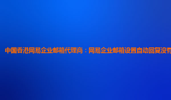 2024-02-12江山网易企业邮箱代理商:网易企业邮箱设置自动回复 网易企业邮箱是一款功能强大的企业级邮件服务,为企业提供高效、安全和稳定的电子邮件解决方案。其自动回复功能是大大提升工作效率和客户满意度的利器。 网...