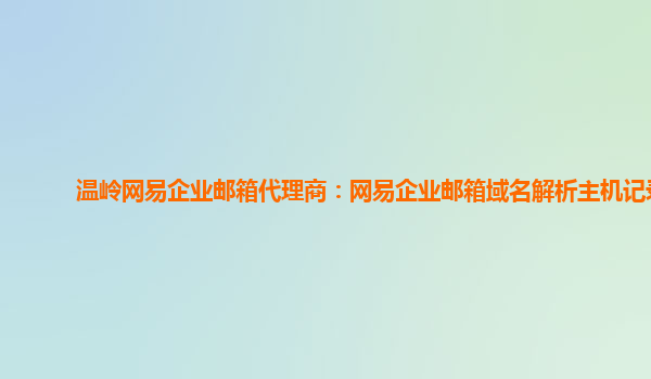 2024-02-12网易企业邮箱域名解析主机记录 网易企业邮箱是一款专为企业用户定制的电子邮件服务,拥有稳定、安全、易用的特点。作为温岭网易企业邮箱代理商,我们为您提供了便捷的域名解析主机记录服务。以下是网易企业邮箱和网...