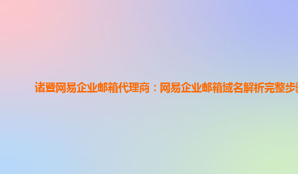 2024-02-12网易企业邮箱域名解析完整步骤 作为诸暨网易企业邮箱的代理商,我们了解到域名解析是设置网易企业邮箱的重要一步。以下是详细的步骤及操作指南,以帮助您顺利完成域名解析。 步骤一:登录域名注册商 首先,打开您的...