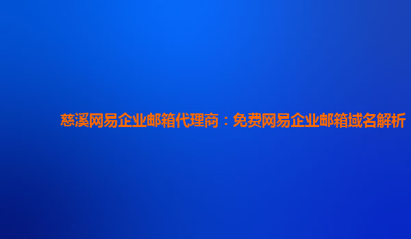 2024-02-12慈溪网易企业邮箱代理商:免费网易企业邮箱域名解析 网易企业邮箱作为一款专业的企业邮件服务产品,拥有许多优势和特点。作为慈溪地区的网易企业邮箱代理商,我们提供免费的网易企业邮箱域名解析服务,让您可以更...
