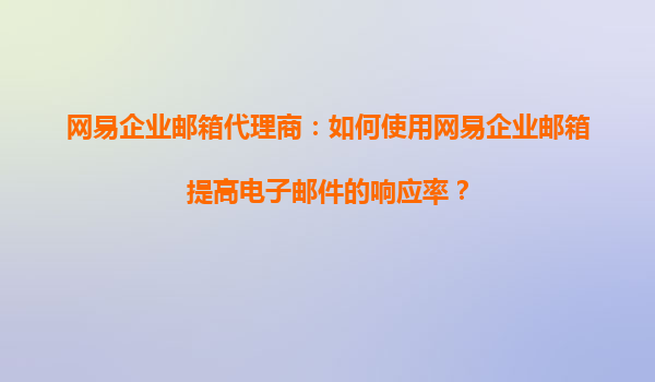 2025-09-03如何使用网易企业邮箱提高电子邮件的响应率? 在现代商业环境中,电子邮件是企业日常沟通的重要工具。然而,许多企业发现邮件的响应率并不高,严重影响了工作效率和客户满意度。作为网易企业邮箱代理商,我们深...