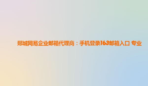 2024-02-04郯城网易企业邮箱代理商:手机登录163邮箱入口专业 手机登录163邮箱入口 使用手机登录163邮箱是一种便捷的方式,让用户可以随时随地查看和发送邮件。通过网易企业邮箱代理商,您可以轻松找到手机登录163邮箱的入口...