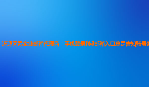 2024-02-04沂源网易企业邮箱代理商:手机登录163邮箱入口总是告知账号密码错误 引言 近年来,随着企业信息化的快速发展,企业对于高效、稳定且安全的电子邮件服务需求日益增加。作为国内领先的企业邮箱提供商,网易企业邮箱凭...