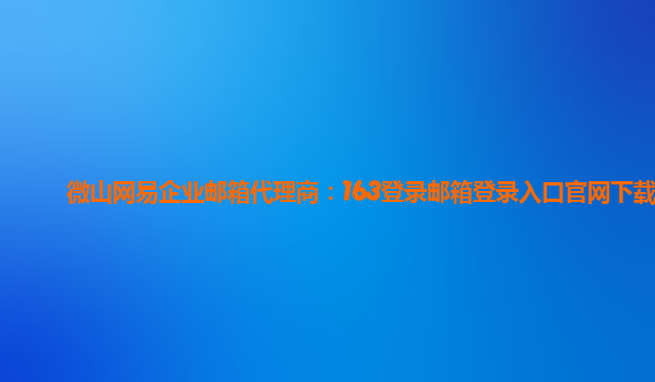 2024-02-04网易企业邮箱代理商:163邮箱登录下载 什么是网易企业邮箱? 网易企业邮箱是网易公司开发的一款针对企业用户的电子邮件服务。它基于云计算和大数据技术,为企业提供了稳定、安全、高效的电子邮件解决方案。 网易企...