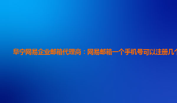 2024-02-02网易企业邮箱代理商:一个手机号可以注册几个邮箱 网易企业邮箱是国内一流的企业级邮箱服务提供商,为企业和个人用户提供稳定、安全、可靠的企业邮箱解决方案。作为阜宁网易企业邮箱代理商,我们经常接到关于注册邮...