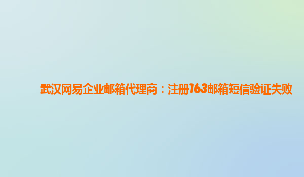 以武汉网易企业邮箱代理商:注册163邮箱短信验证失败为主题的文章 在如今信息技术高速发展的时代,电子邮件成为了人们在工作和生活中必不可少的沟通工具之一。而对于企业来说,一个稳定、安全且功能强大的企业邮...