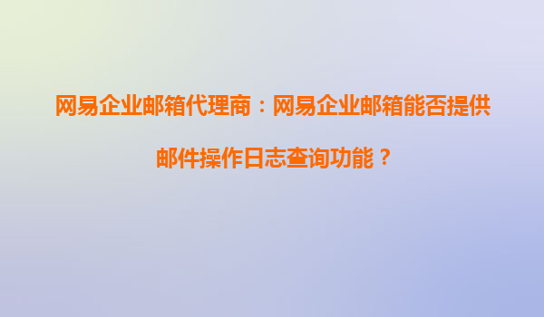 2025-08-30网易企业邮箱的邮件操作日志查询功能 作为国内领先的企业邮箱服务提供商,网易企业邮箱凭借其稳定、安全、高效的特性,赢得了众多企业的青睐。其中,邮件操作日志查询功能是企业用户非常关注的一项服务。那么,网易...
