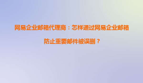 2025-08-30网易企业邮箱代理商:怎样通过网易企业邮箱防止重要邮件被误删? 在日常工作中,邮件是企业沟通的重要工具之一。然而,误删重要邮件的情况时有发生,可能导致信息丢失、工作延误甚至法律风险。作为网易企业邮箱...