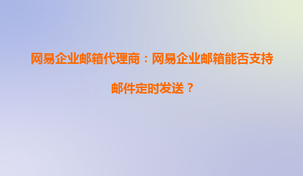 2025-08-30网易企业邮箱代理商:网易企业邮箱能否支持邮件定时发送? 在现代商务沟通中,邮件的时效性往往至关重要。无论是跨时区协作、错峰发送以提高打开率,还是避免非工作时间打扰客户,邮件定时发送功能都成为企业邮...