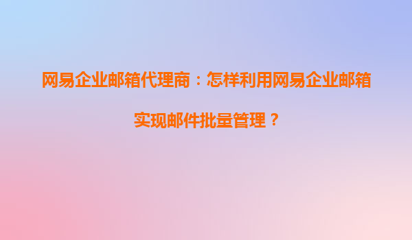 2025-08-29网易企业邮箱代理商:怎样利用网易企业邮箱实现邮件批量管理? 一、网易企业邮箱的核心优势 网易企业邮箱作为国内领先的企业级邮件服务,凭借以下优势成为代理商推广的首选: 高稳定性与安全...