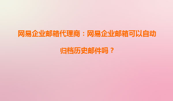 网易企业邮箱代理商:网易企业邮箱可以自动归档历史邮件吗? 在当今数字化办公环境中,企业邮箱不仅是沟通的桥梁,更是信息管理的重要工具。许多企业在选择邮箱服务时,会特别关注邮件的存储和管理功...
