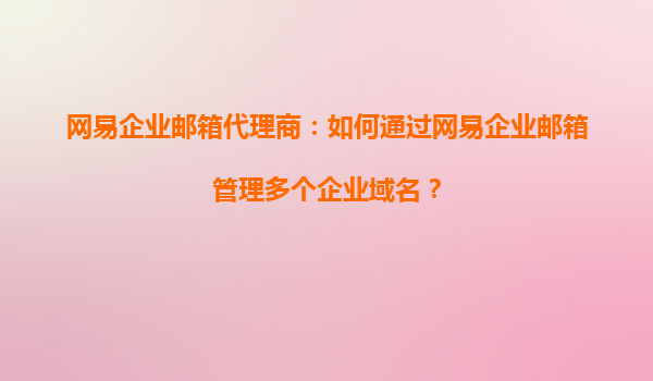 2025-08-26网易企业邮箱代理商:高效管理多企业域名的专业解决方案 一、多域名管理的核心需求与挑战 在数字化办公时代,企业集团或代理商常需同时管理多个子公司或客户的企业邮箱域名。传统模式下,每个域名需独立配...