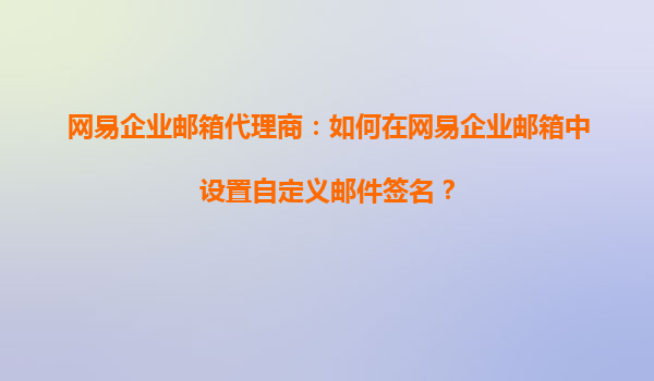 2025-08-26网易企业邮箱代理商:如何在网易企业邮箱中设置自定义邮件签名? 一、网易企业邮箱的优势 网易企业邮箱作为国内领先的企业级邮箱服务提供商,凭借其稳定、安全、高效的特点,深受企业用户的信赖。以下是网...