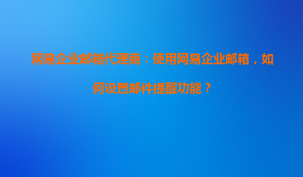 2025-08-26网易企业邮箱代理商:使用网易企业邮箱,如何设置邮件提醒功能? 在现代商务沟通中,电子邮件是企业内外交流的重要工具。为了确保不错过任何重要邮件,邮件提醒功能显得尤为重要。作为国内领先的企业邮箱服务提...