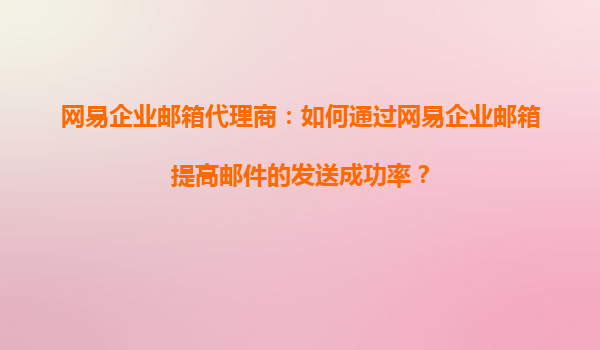网易企业邮箱代理商:如何通过网易企业邮箱提高邮件的发送成功率? 在当今的商业环境中,电子邮件仍然是企业沟通的重要工具之一。然而,随着垃圾邮件和网络攻击的增多,邮件的发送成功率成为了许多企业关注的焦...
