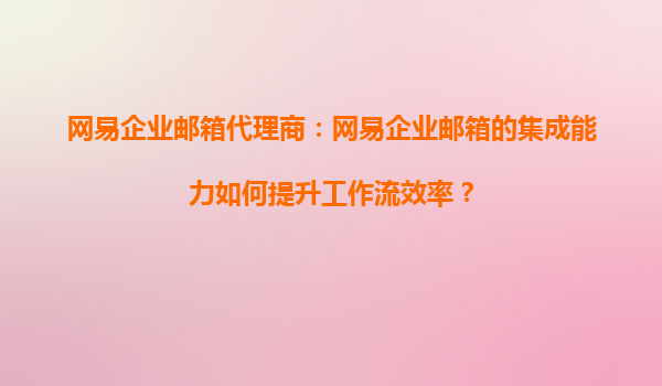 2025-08-26网易企业邮箱代理商:网易企业邮箱的集成能力如何提升工作流效率? 在当今快节奏的商业环境中,企业邮箱不仅是沟通的工具,更是提升工作效率的核心平台。作为国内领先的企业邮箱服务提供商,网易企业邮箱凭借其...