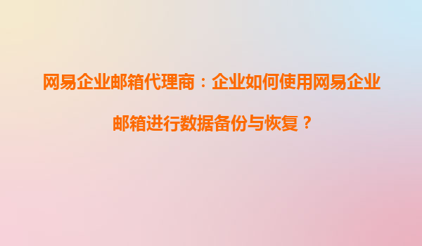 网易企业邮箱代理商:企业如何使用网易企业邮箱进行数据备份与恢复? 在当今数字化时代,企业数据的安全性和可恢复性变得尤为重要。作为国内领先的企业邮箱服务提供商,网易企业邮箱凭借其强大的功能...