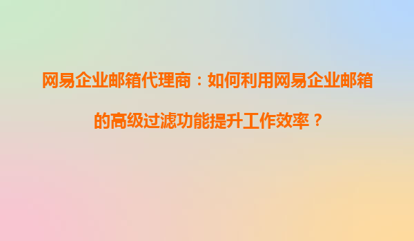 2025-08-26网易企业邮箱代理商:如何利用网易企业邮箱的高级过滤功能提升工作效率? 一、网易企业邮箱的核心优势 网易企业邮箱作为国内领先的企业级邮件服务提供商,凭借其稳定的系统架构、强大的安全防护和丰富的功...