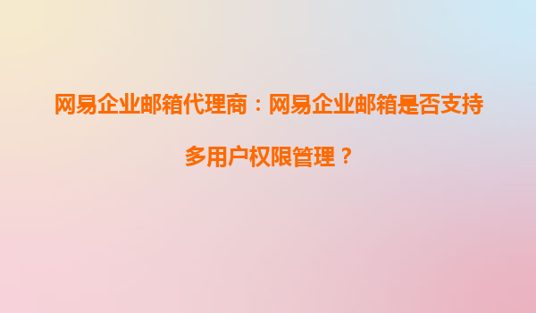 2025-08-26网易企业邮箱代理商:网易企业邮箱是否支持多用户权限管理? 在当今数字化办公环境中,企业邮箱不仅是沟通的重要工具,更是企业管理效率和安全性的体现。作为国内领先的企业邮箱服务提供商,网易企业邮箱凭借其...