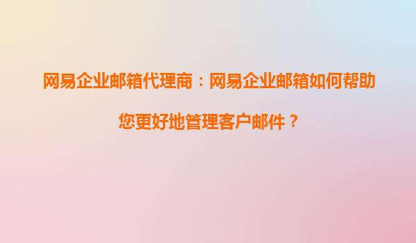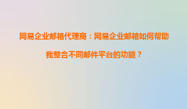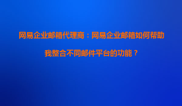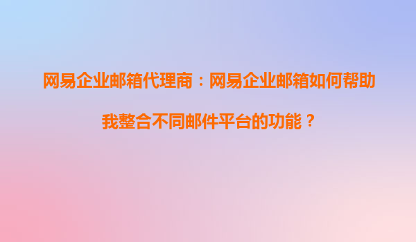 2025-08-24网易企业邮箱代理商:网易企业邮箱如何帮助我整合不同邮件平台的功能? 在当今数字化办公环境中,企业往往需要使用多个邮件平台来满足不同业务需求,但多平台管理可能导致效率低下、数据分散等问题。网易企业邮...