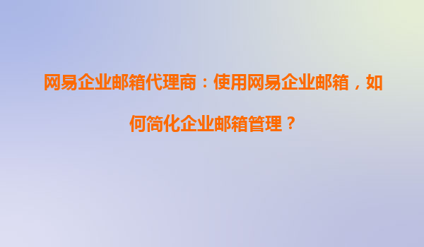 2025-08-25网易企业邮箱代理商:使用网易企业邮箱,如何简化企业邮箱管理? 一、网易企业邮箱的核心优势 网易企业邮箱作为国内领先的企业通信解决方案,凭借以下核心优势成为众多企业的首选: 高安全性...